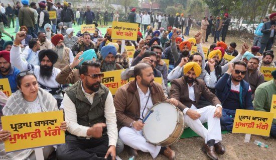ਚੰਡੀਗੜ੍ਹ, 9 ਫਰਵਰੀ 2026- ਆਮ ਆਦਮੀ ਪਾਰਟੀ (ਆਪ) ਪੰਜਾਬ ਦੇ ਕੈਬਨਿਟ ਮੰਤਰੀਆਂ, ਵਿਧਾਇਕਾਂ, ਚੇਅਰਮੈਨਾਂ ਅਤੇ ਵਰਕਰਾਂ ਨੇ ਵਿਰੋਧੀ ਧਿਰ ਦੇ ਨੇਤਾ ਪ੍ਰਤਾਪ ਸਿੰਘ ਬਾਜਵਾ ਅਤੇ ਕਾਂਗਰਸ ਪ੍ਰਧਾਨ ਰਾਜਾ ਵੜਿੰਗ ਵੱਲੋਂ ਮੰਤਰੀ ਹਰਭਜਨ ਸਿੰਘ ਈ.ਟੀ.ਓ. ਵਿਰੁੱਧ ਕੀਤੀ ਗਈ ਇਤਰਾਜ਼ਯੋਗ ਟਿੱਪਣੀ ਦੇ ਵਿਰੋਧ ਵਿੱਚ ਬਾਜਵਾ ਦੀ ਰਿਹਾਇਸ਼ ਦੇ ਬਾਹਰ ‘ਬੈਂਡ-ਵਾਜੇ’ ਨਾਲ ਪ੍ਰਦਰਸ਼ਨ ਕੀਤਾ।