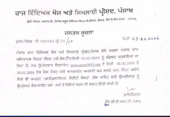 ਅਜਿਹਾ ਕਰਨ ਵਿੱਚ ਅਸਫਲ ਰਹਿਣ ‘ਤੇ ਵਿਭਾਗ ਸੁਪਰੀਮ ਕੋਰਟ ਦੇ ਆਦੇਸ਼ ਅਨੁਸਾਰ ਅਗਲੀ ਕਾਰਵਾਈ ਕਰੇਗਾ। ਹਾਲਾਂਕਿ, ਵਿਭਾਗ ਨੇ ਇਹ ਵੀ ਸਪੱਸ਼ਟ ਕੀਤਾ ਹੈ ਕਿ PSTET-2 ਪ੍ਰੀਖਿਆ ਸਾਲ 2025 ਵਿੱਚ ਨਹੀਂ ਲਈ ਗਈ, ਇਸ ਲਈ 12.11.2025, 24.12.2025, 04.01.2026 ਅਤੇ 05.01.2026 ਦੇ ਹੁਕਮਾਂ ਤਹਿਤ ਤਰੱਕੀ ਅਤੇ ਸੇਵਾਮੁਕਤ ਹੋਏ ਕਰਮਚਾਰੀਆਂ ਲਈ PSTET-2 ਪਾਸ ਕਰਨਾ ਲਾਜ਼ਮੀ ਨਹੀਂ ਹੋਵੇਗਾ। ਇਹ ਹੁਕਮ ਡਾਇਰੈਕਟਰ ਸਕੂਲ ਸਿੱਖਿਆ (ਸੈਕੰਡਰੀ), ਪੰਜਾਬ ਵੱਲੋਂ 06 ਫਰਵਰੀ 2026 ਨੂੰ ਜਾਰੀ ਕੀਤਾ ਗਿਆ ਹੈ। JB
