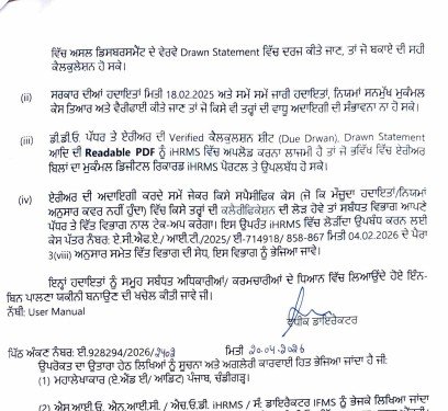 ਵੈਰੀਫਾਈਡ ਕੈਲਕੂਲੇਸ਼ਨ ਸੀਟ ਅਤੇ ਸਟੇਟਮੈਂਟ ਨੂੰ iHRMS ‘ਤੇ ਰੀਡੇਬਲ PDF ਫਾਰਮੈਟ ਵਿੱਚ ਅਪਲੋਡ ਕਰਨਾ ਲਾਜ਼ਮੀ ਹੋਵੇਗਾ ਤਾਂ ਜੋ ਭਵਿੱਖ ਵਿੱਚ ਰਿਕਾਰਡ ਸੁਰੱਖਿਅਤ ਰਹੇ।
