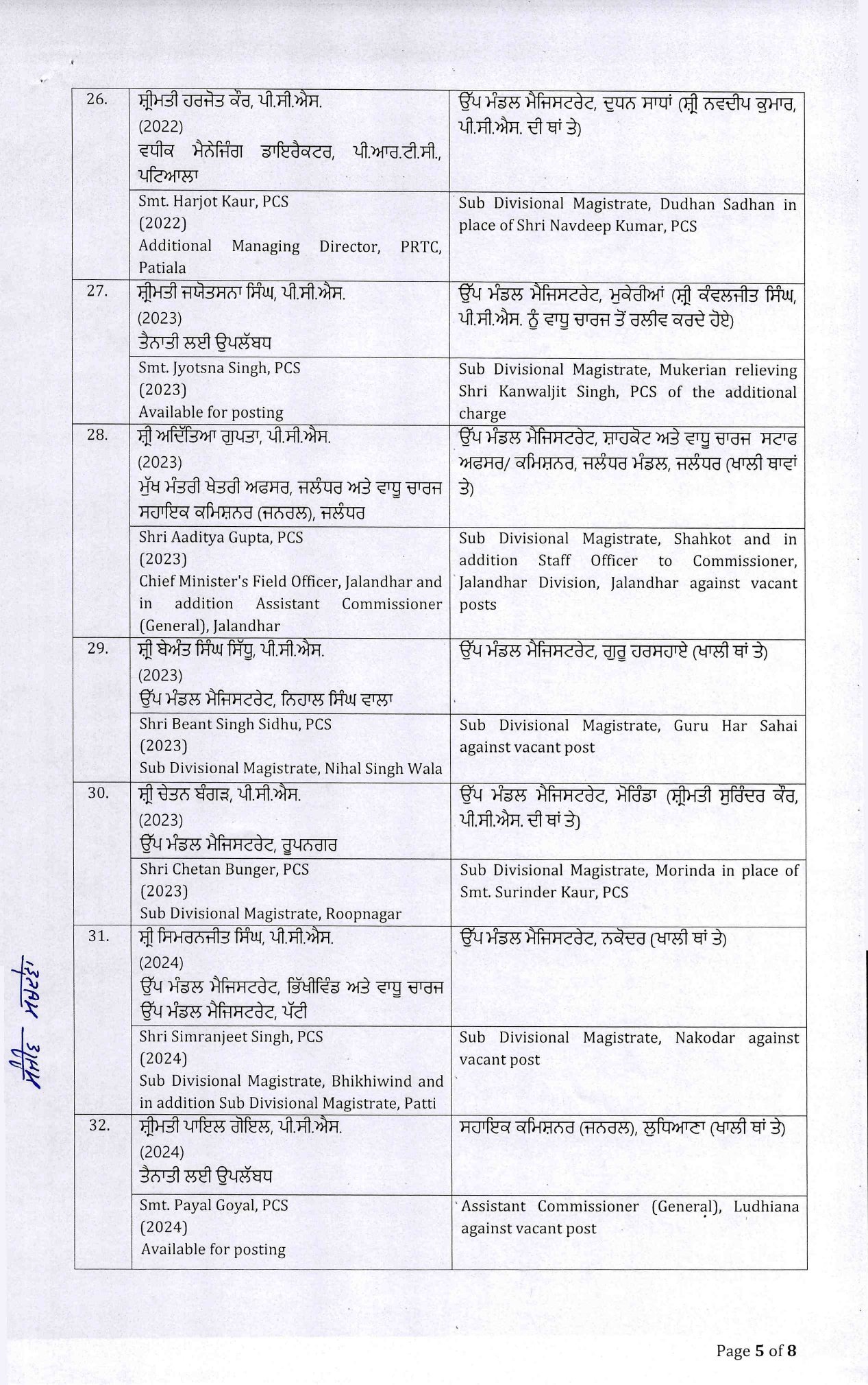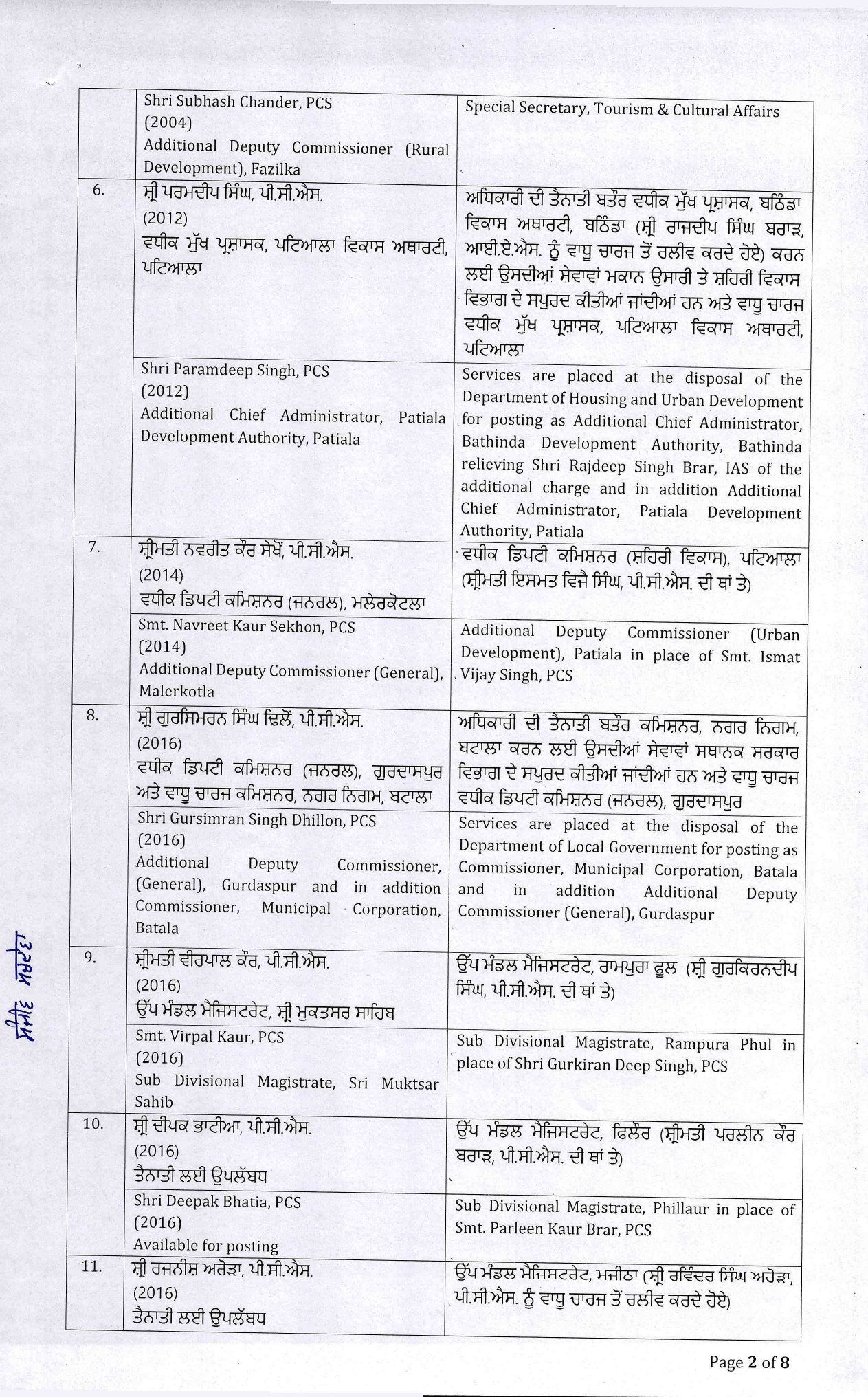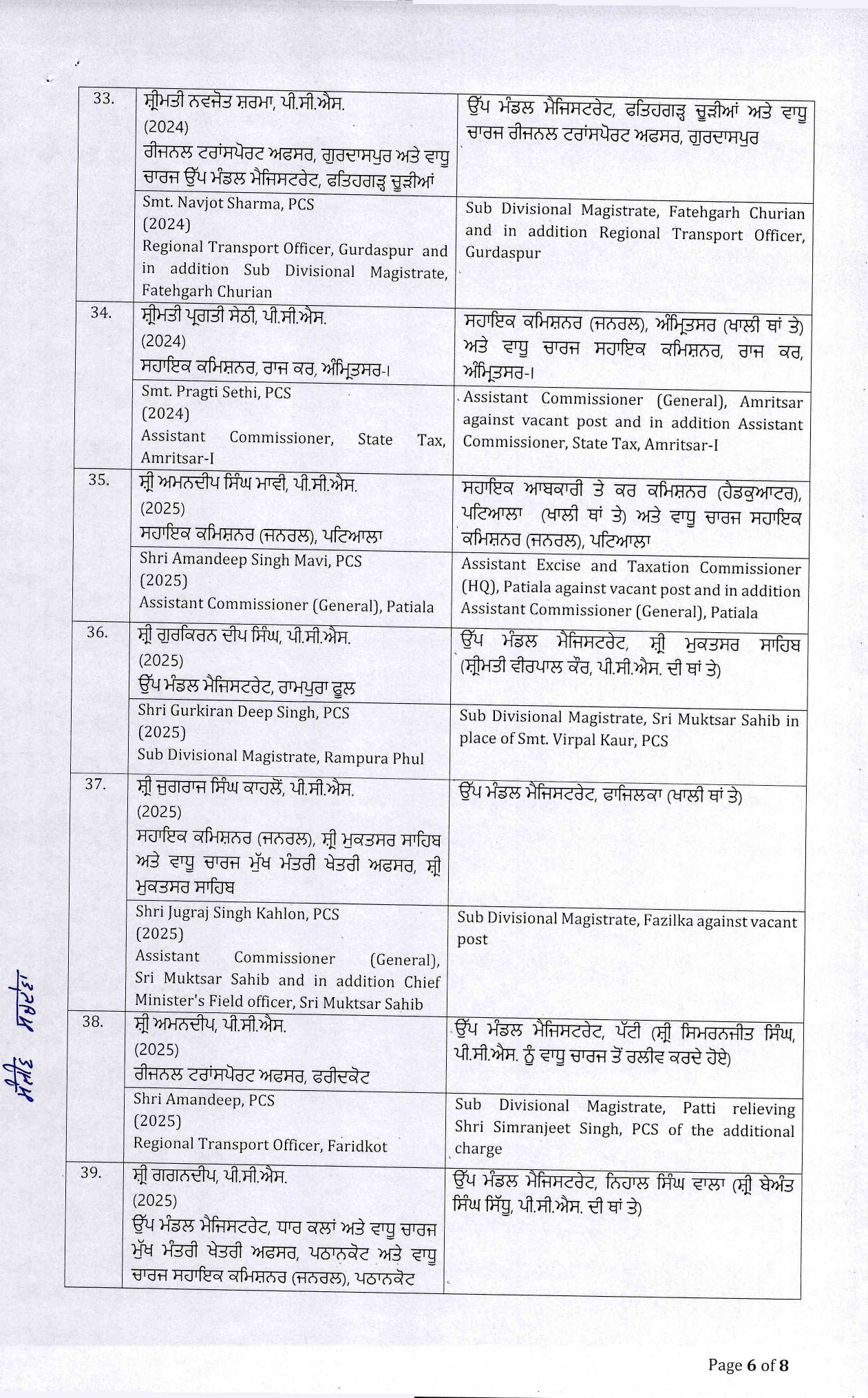 ਪੰਜਾਬ ਸਰਕਾਰ ਵੱਲੋਂ ਸੂਬੇ ਅੰਦਰ ਵੱਡੇ ਪੱਧਰ ‘ਤੇ ਪ੍ਰਸ਼ਾਸਨਿਕ ਫੇਰਬਦਲ ਕੀਤਾ ਗਿਆ ਹੈ। ਇਨ੍ਹਾਂ ਵਿੱਚ 2 ਆਈਏਐਸ ਅਫਸਰਾਂ ਤੋਂ ਇਲਾਵਾ 40 ਪੀਸੀਐਸ ਅਫਸਰ ਹਨ। ਇਨ੍ਹਾਂ ਅਫਸਰਾਂ ਨੂੰ ਵੱਖ-ਵੱਖ ਥਾਵਾਂ ‘ਤੇ ਪੋਸਟਿੰਗ ਦਿੱਤੀ ਗਈ ਹੈ।
