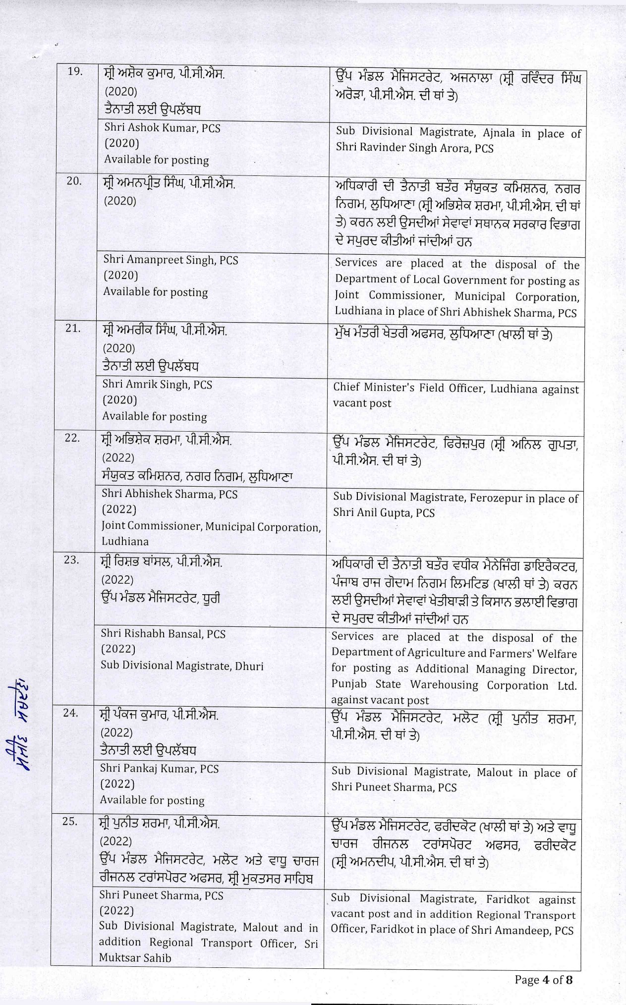 ਪੰਜਾਬ ਸਰਕਾਰ ਵੱਲੋਂ 42 ਆਈਏਐਸ ਅਤੇ ਪੀਸੀਐਸ ਅਫਸਰਾਂ ਦਾ ਤਬਾਦਲਾ, ਪੜ੍ਹੋ ਲਿਸਟ